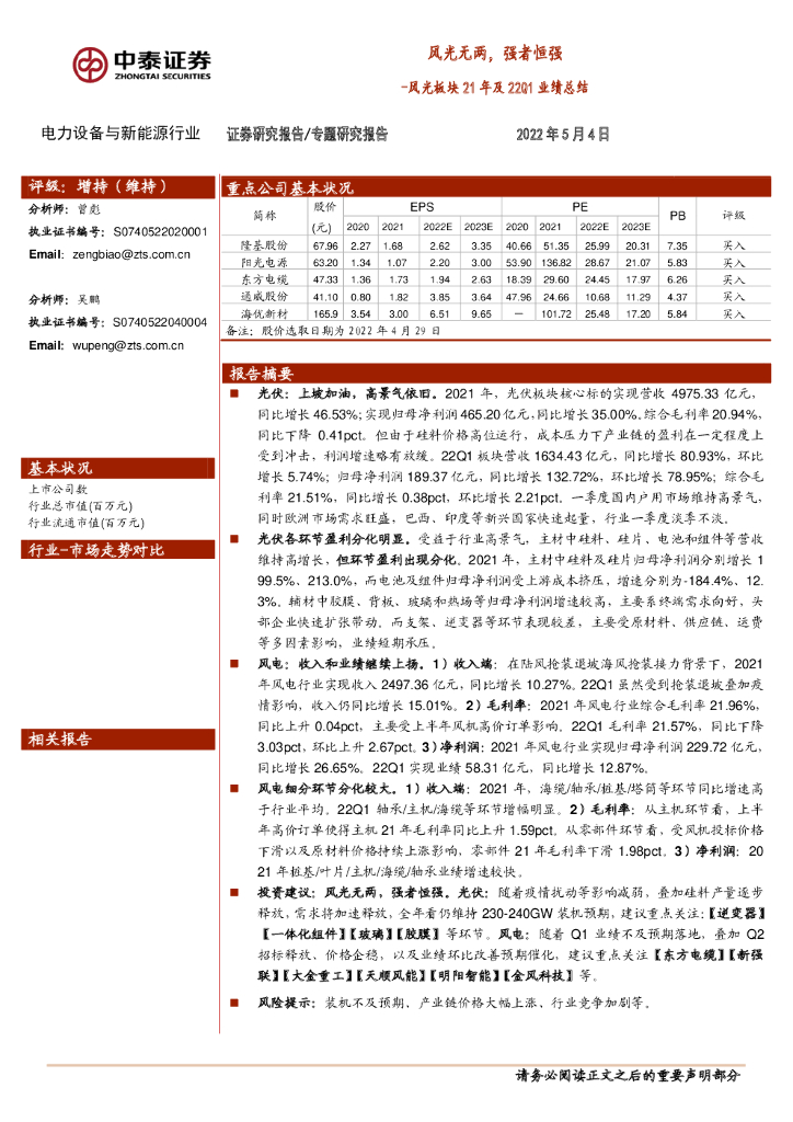 中泰证券:电力设备与新能源行业专题研究报告:风光板块21年及22Q1业绩总结-风光无两,强者恒强.pdf