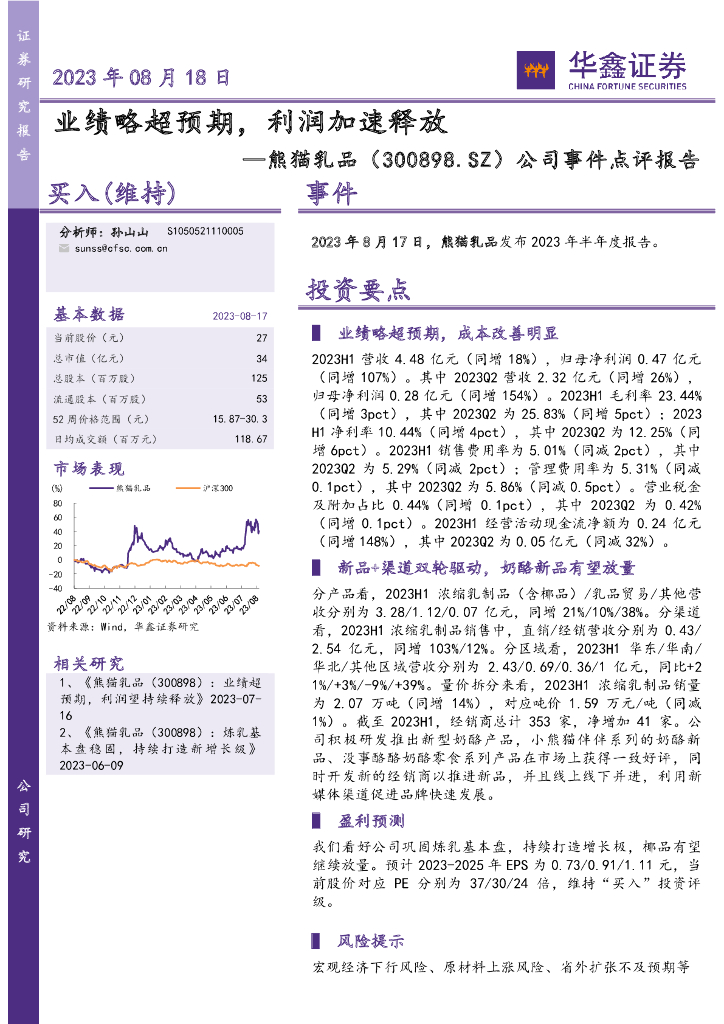 华鑫证券:熊猫乳品(300898)-公司事件点评报告:业绩略超预期,利润加速释放.pdf