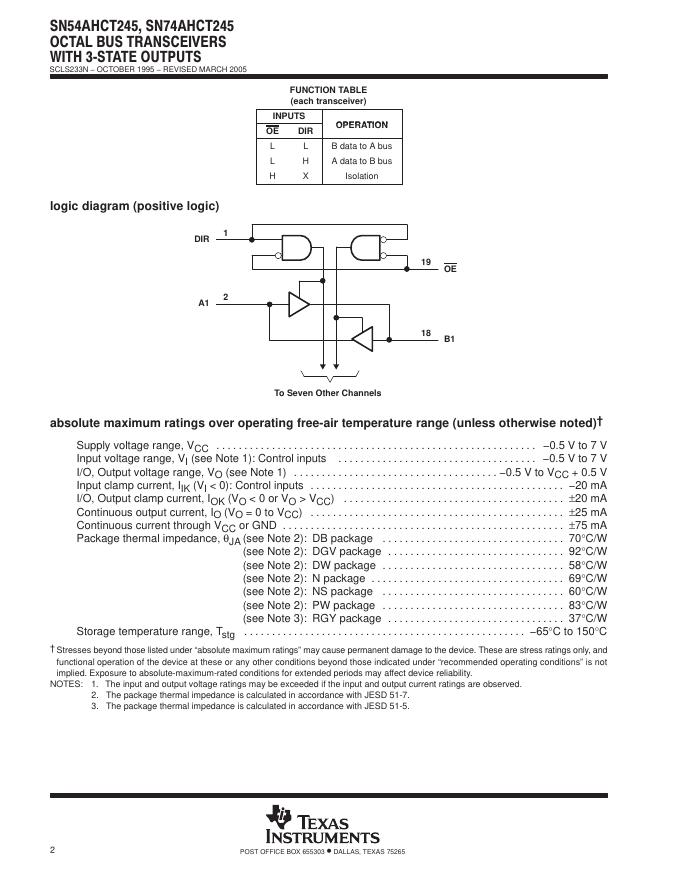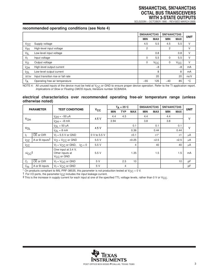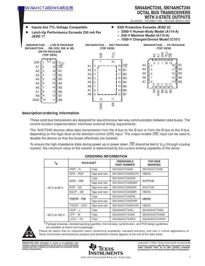 TEXAS INSTRUMENTS SN54AHCT245, SN74AHCT245 数据手册.pdf