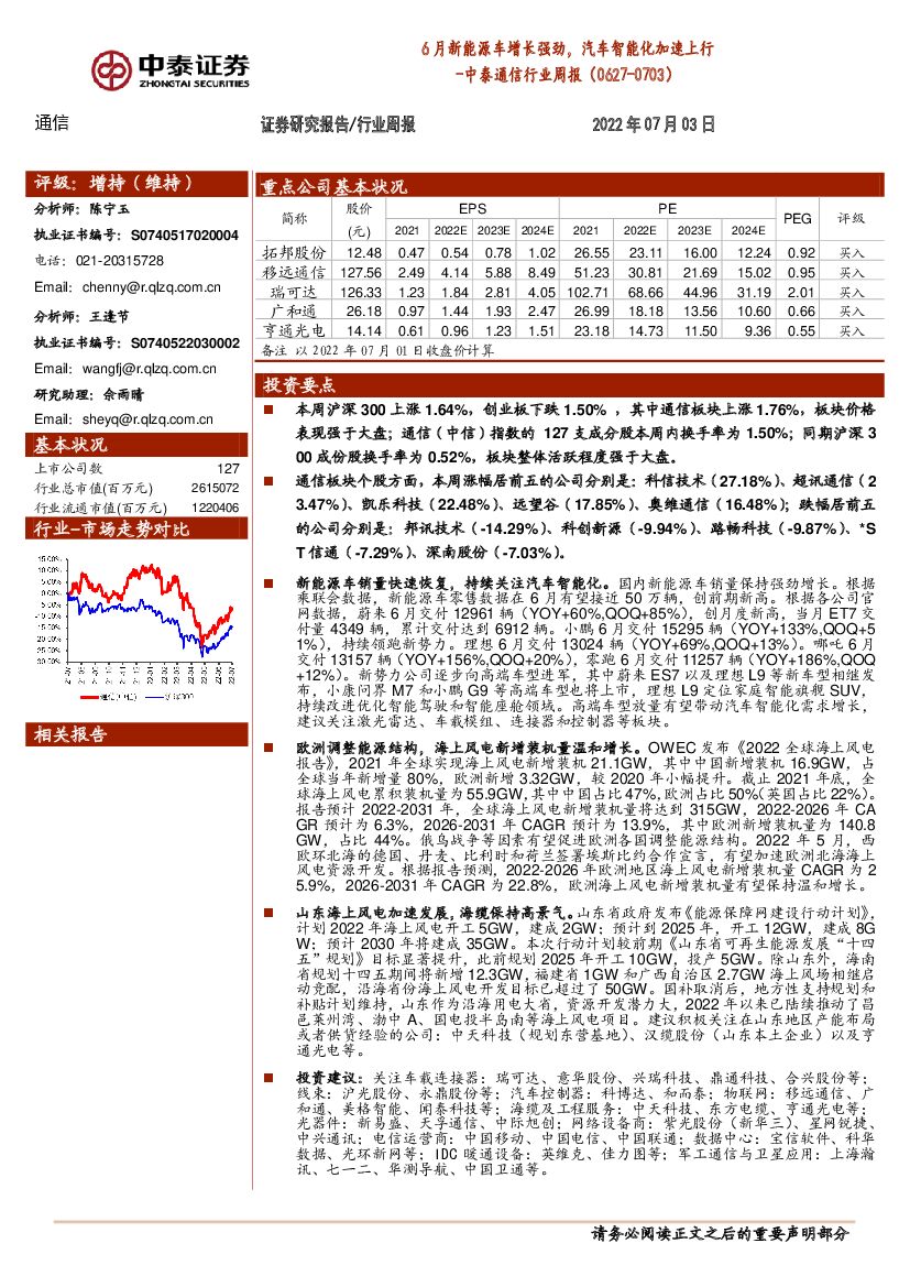 中泰证券:中泰通信行业周报:6月新能源车增长强劲,汽车智能化加速上行.pdf