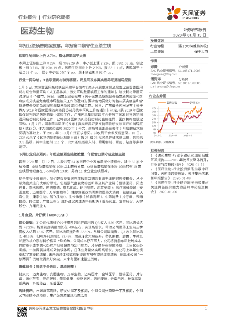 天风证券:医药生物行业研究周报:年报业绩预告陆续披露,年报窗口期守住业绩主线.pdf