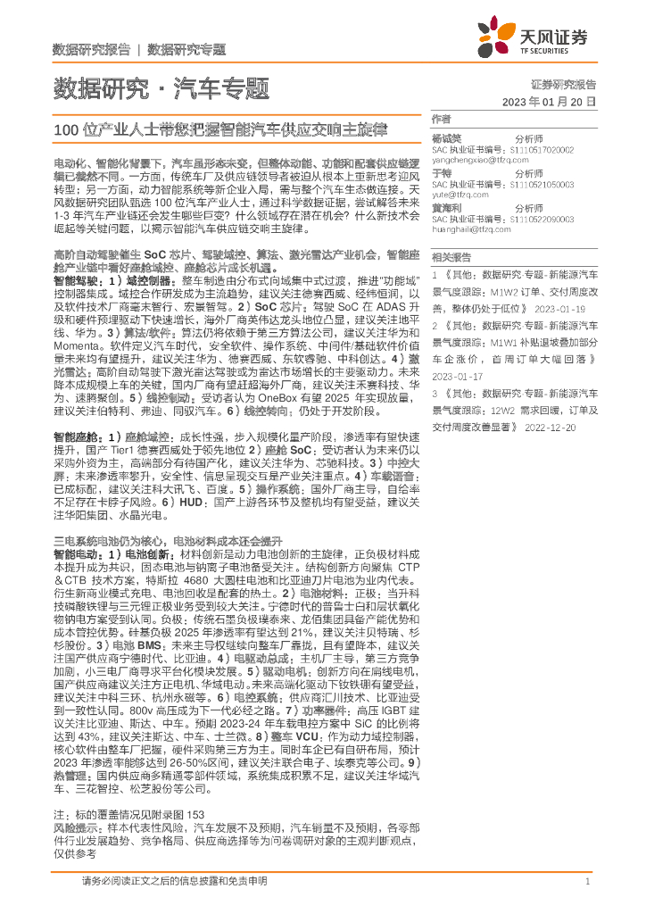 天风证券:数据研究·汽车专题:100位产业人士带您把握智能汽车供应交响主旋律.pdf