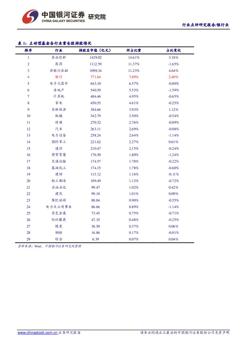 中国银河:银行业:板块一季度持仓占比回升,优质零售行和低估值国有大行受青睐.pdf