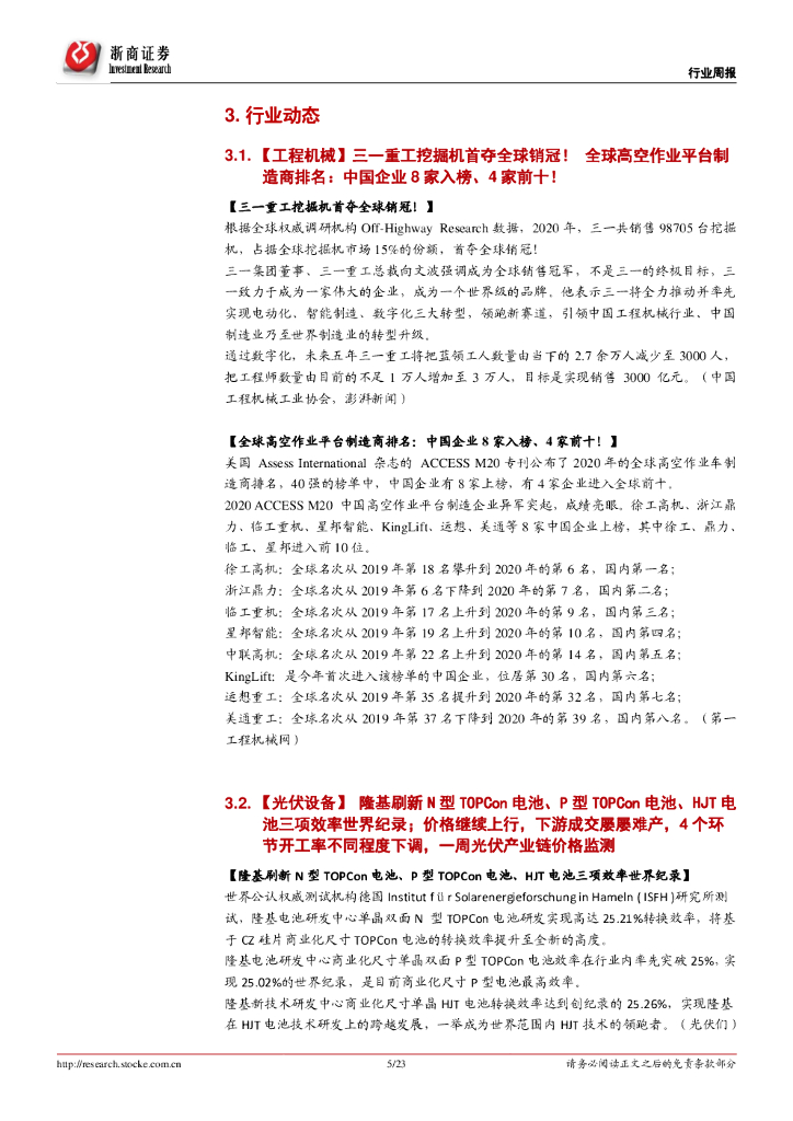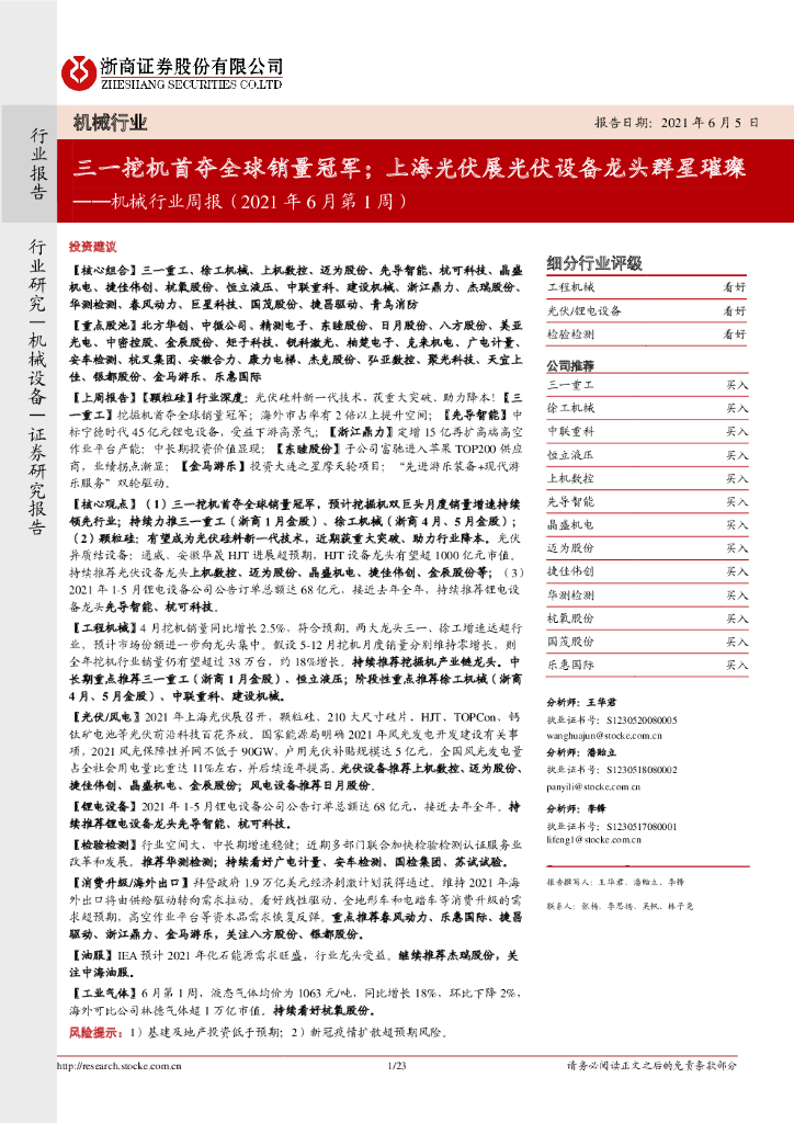 浙商证券:机械行业周报(2021年6月第1周):三一挖机首夺全球销量冠军;上海光伏展光伏设备龙头群星璀璨.pdf