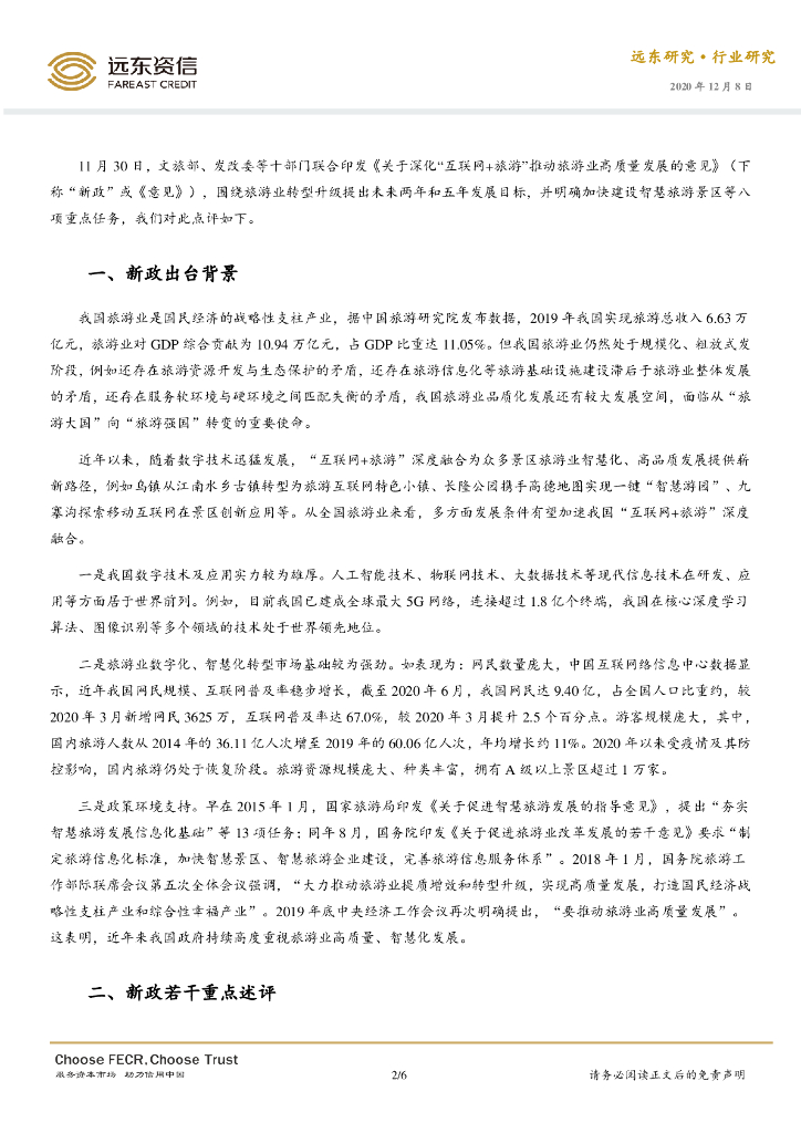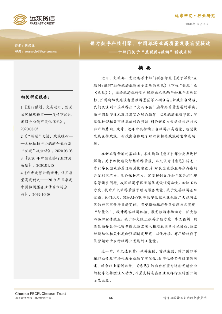 远东资信:借力数字科技引擎,中国旅游业高质量发展有望提速——十部门关于“互联网+旅游”新政点评.pdf