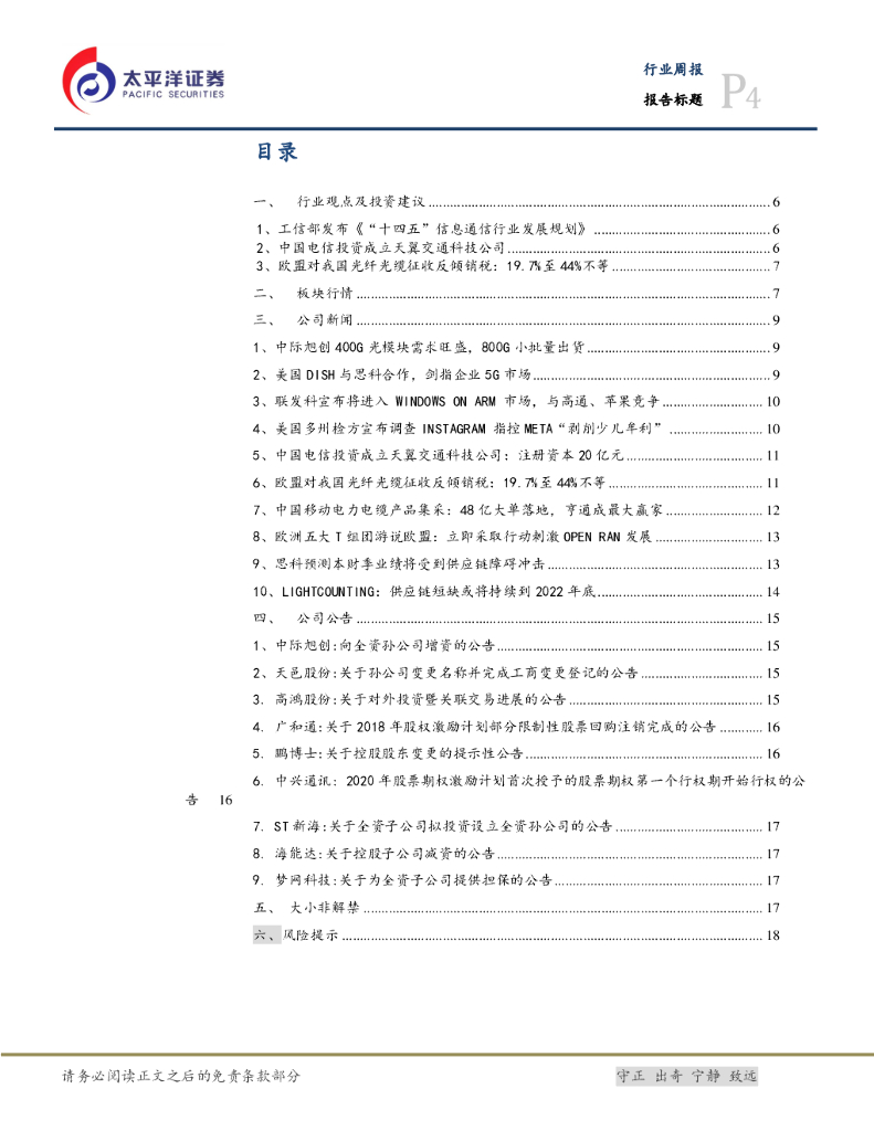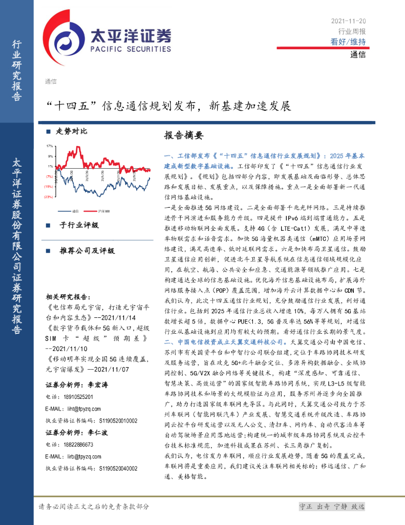太平洋证券:通信行业周报:“十四五”信息通信规划发布,新基建加速发展.pdf