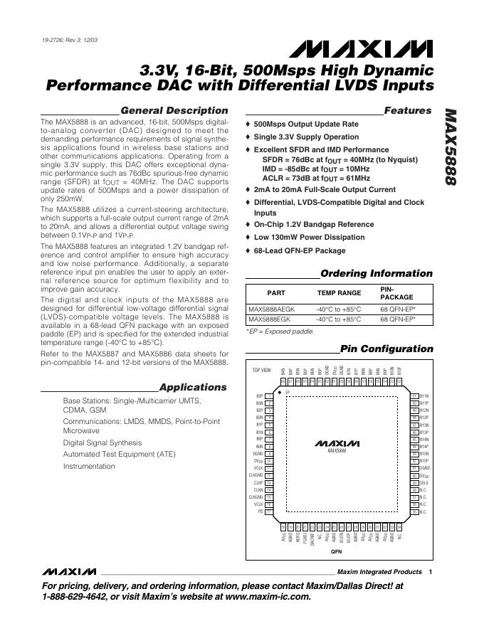 NATIONAL SEMICONDUCTOR - May 27, 2008 DS15BA101 1.5 Gbps Differential Buffer with Adjustable Output Voltage General 说明书
