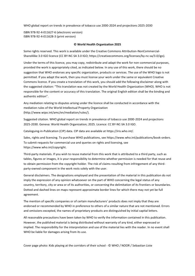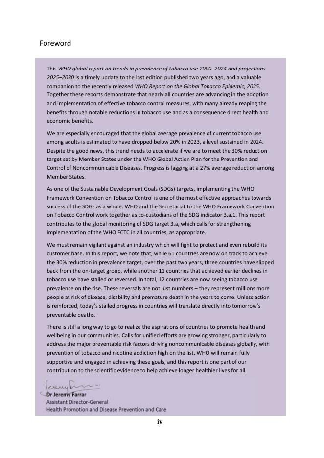 WHO世界卫生组织:2000-2024年世界卫生组织全球烟草使用流行趋势报告及2025-2030年预测(英文版).pdf