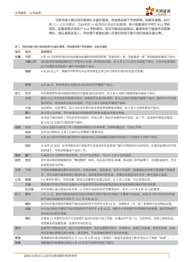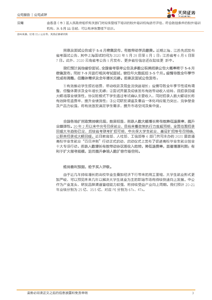 天风证券:中公教育(002607)-线下逐步复课,5-6月招录公告发布高峰,推动招录大年兑现.pdf