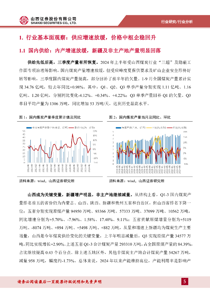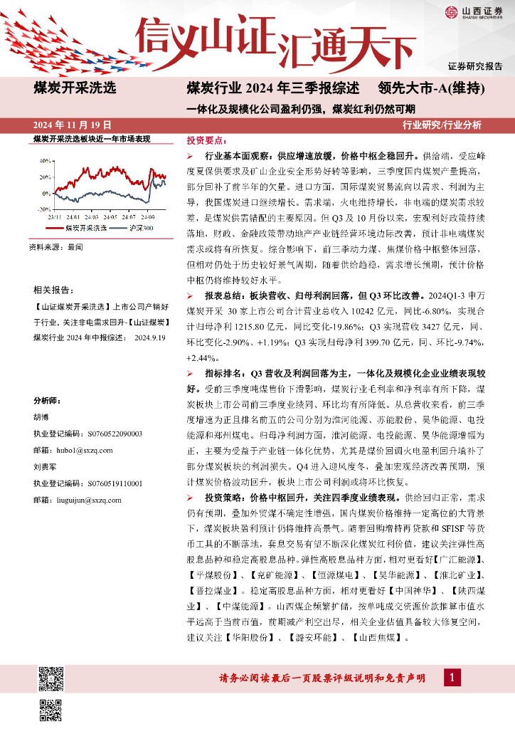 山西证券:煤炭行业2024年三季报综述:一体化及规模化公司盈利仍强,煤炭红利仍然可期.pdf