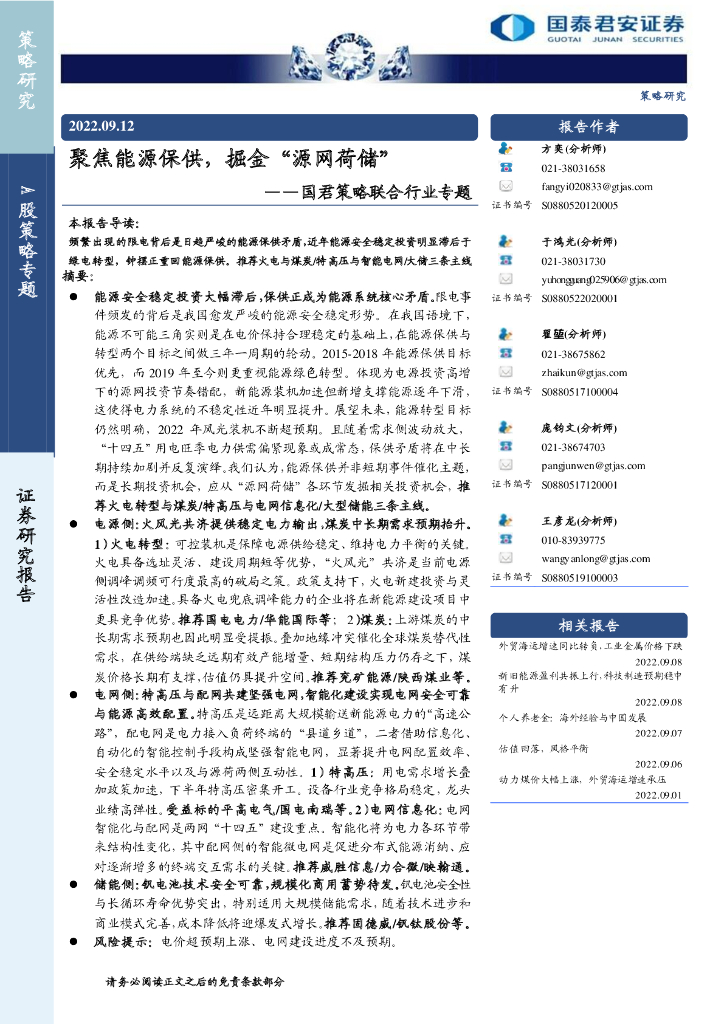 国泰君安:国君策略联合行业专题:聚焦能源保供,掘金“源网荷储”.pdf