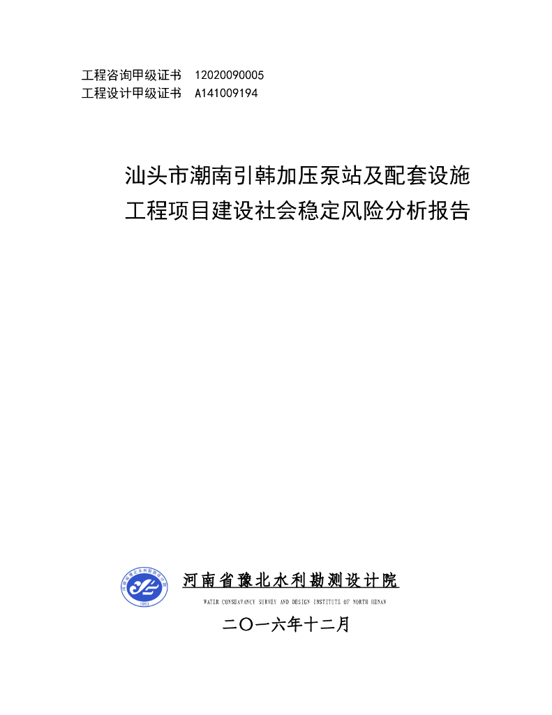汕头市潮南引韩加压泵站及配套设施工程项目建设社会稳定风险分析报告.pdf