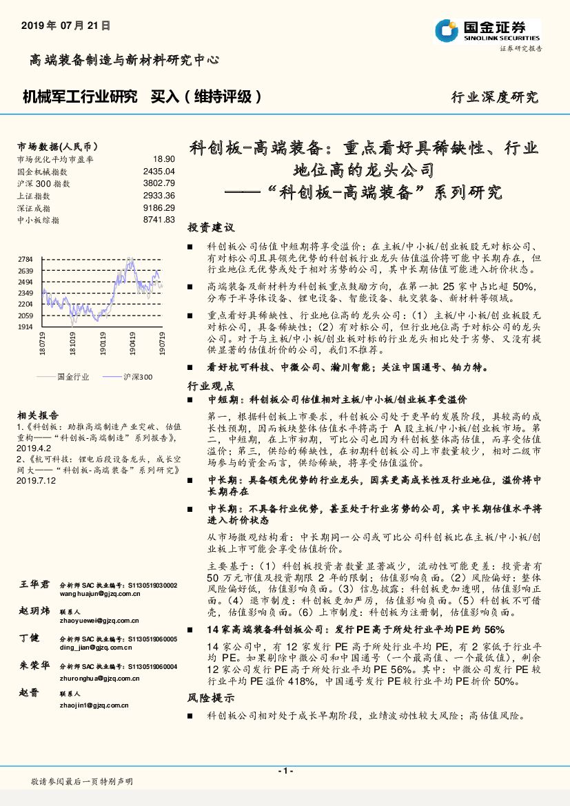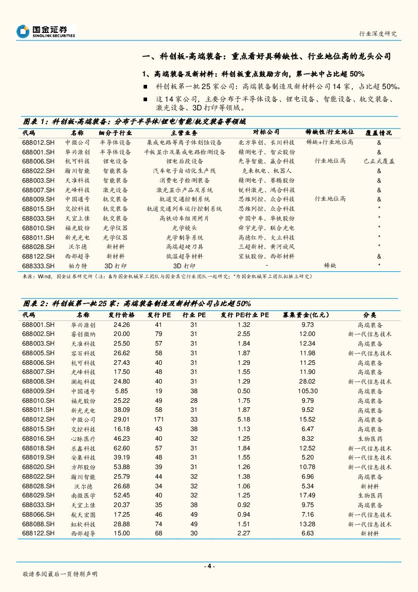 国金证券:“科创板-高端装备”系列研究:科创板-高端装备-重点看好具稀缺性、行业地位高的龙头公司.pdf
