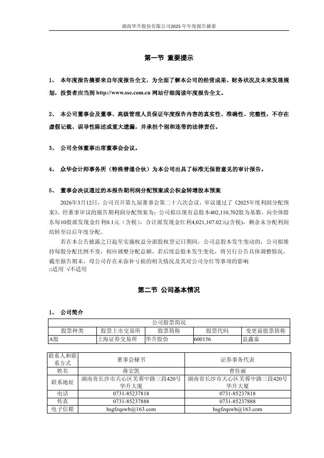 600156-华升股份:华升股份2025年年度报告摘要.pdf