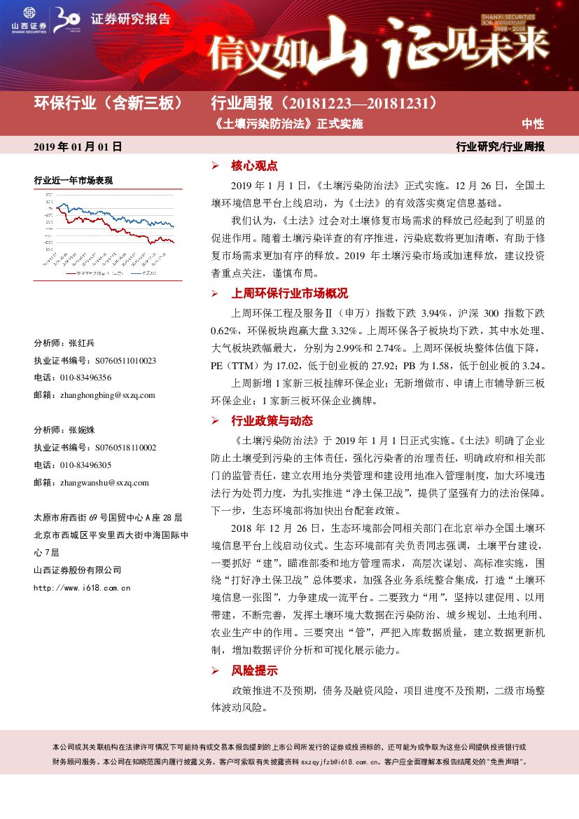 山西证券:环保行业(含新三板)行业周报:《土壤污染防治法》正式实施.pdf