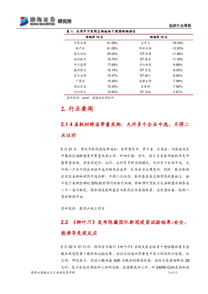 渤海证券:医药行业周报:疫情防控“常态化”,建议关注医药三个赛道.pdf