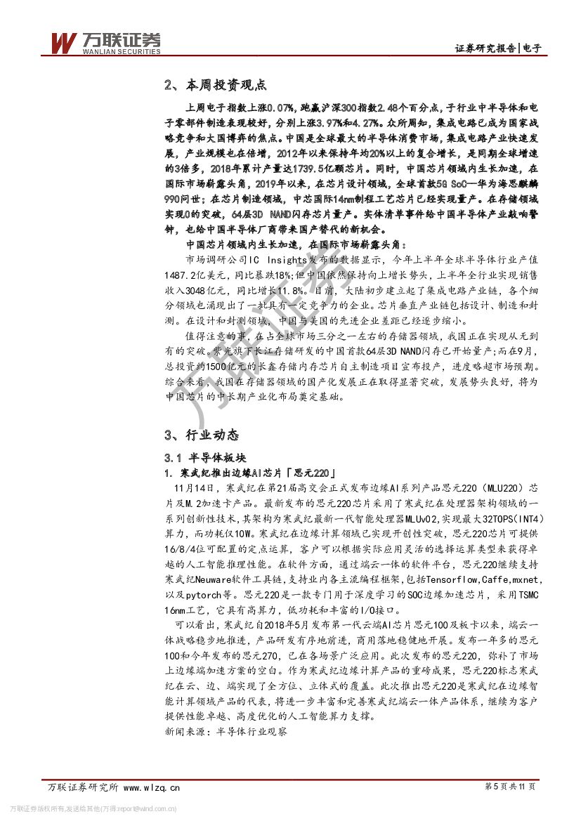 万联证券:电子行业周观点:中国芯发展势头猛进,全球市场展露头角.pdf
