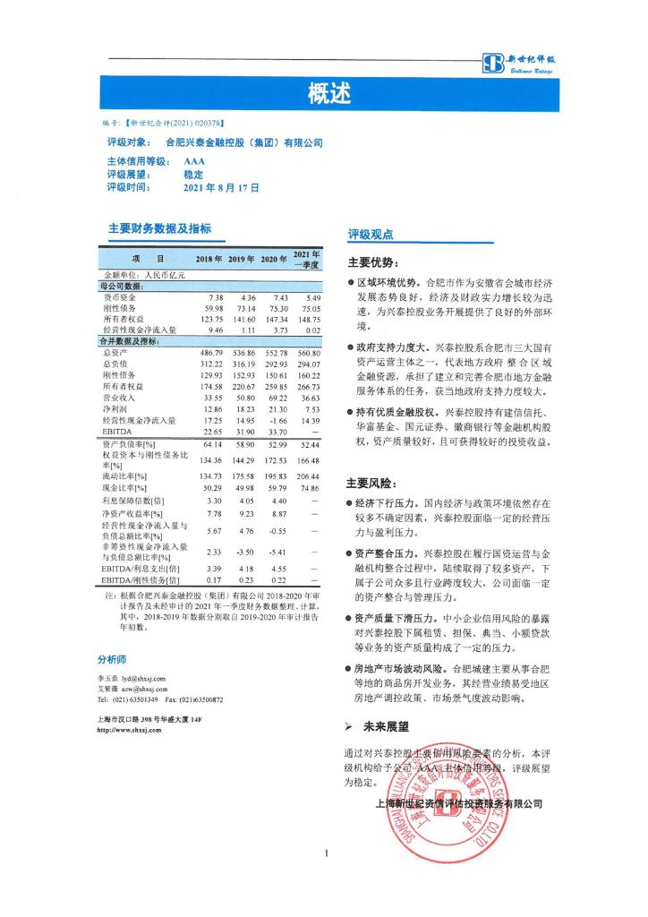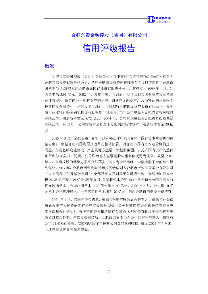 新世纪:合肥兴泰金融控股(集团)有限公司主体信用评级.pdf