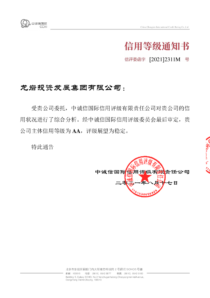 中诚信:2021年度龙岩投资发展集团有限公司主体评级报告.pdf
