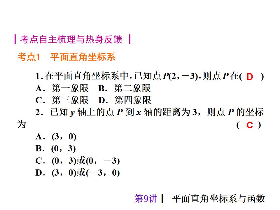 中考复习课件【第9讲】平面直角坐标系与函数(27页)ppt课件.ppt