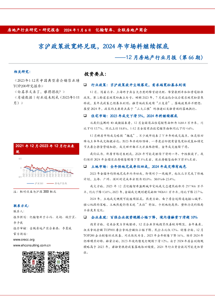 亿翰智库:12月房地产行业月报(第66期):京沪政策放宽终兑现,2024年市场料继续探底.pdf