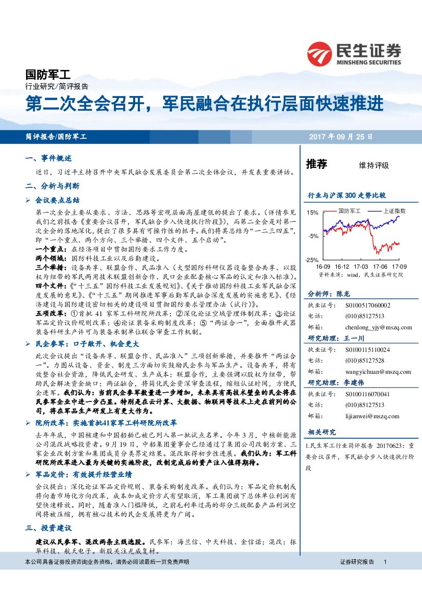民生证券:国防军工:第二次全会召开,军民融合在执行层面快速推进.pdf