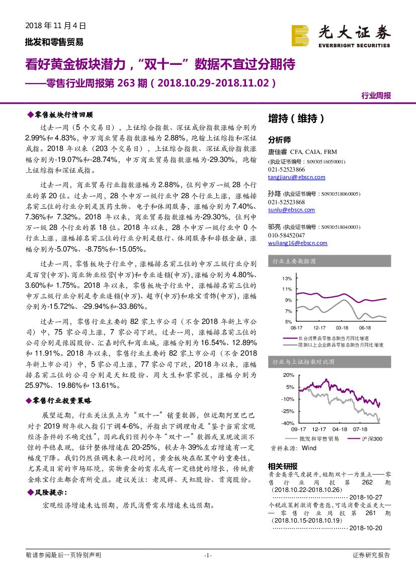 光大证券:零售行业周报第263期:看好黄金板块潜力,“双十一”数据不宜过分期待.pdf