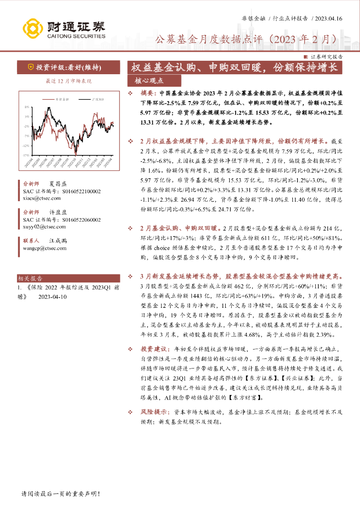 财通证券:非银金融:公募基金月度数据点评(2023年2月)-权益基金认购、申购双回暖,份额保持增长.pdf