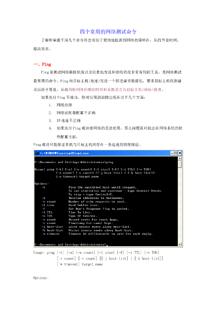 四个常用的网络测试命令.doc