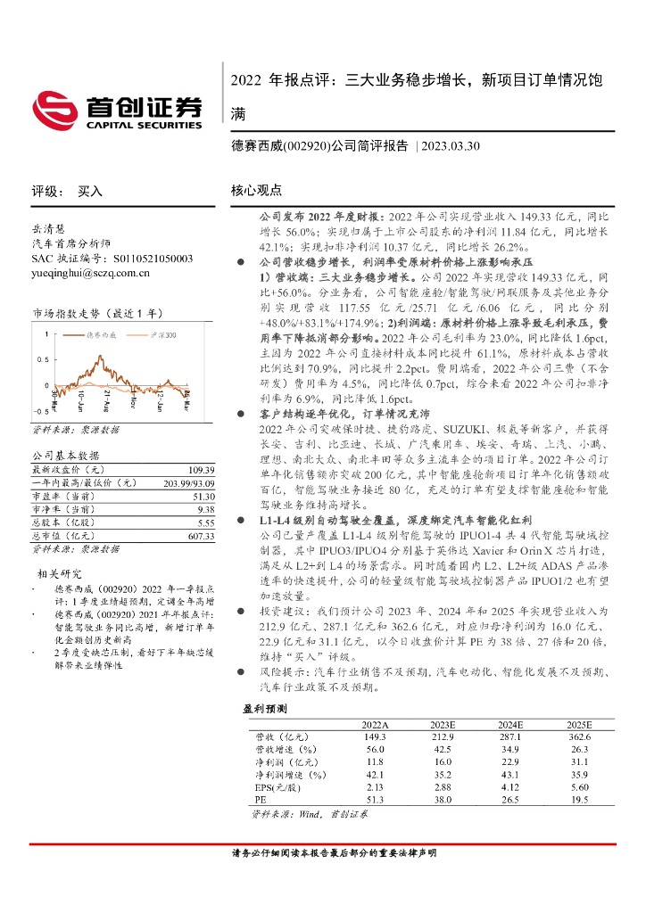 首创证券:德赛西威(002920)-公司简评报告:2022年报点评:三大业务稳步增长,新项目订单情况饱满.pdf