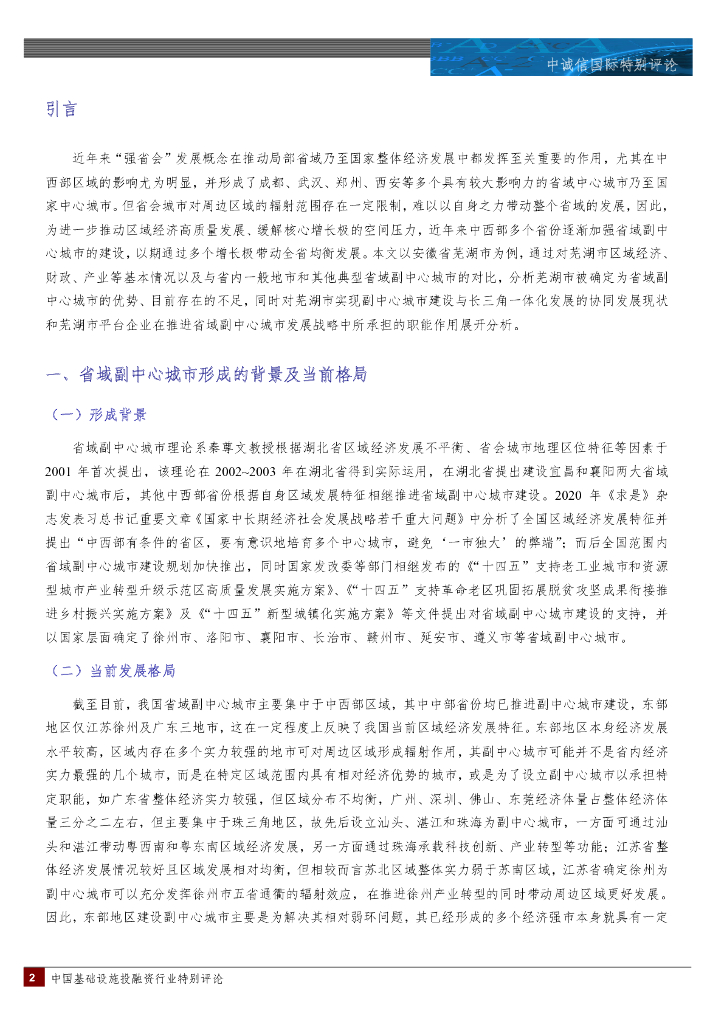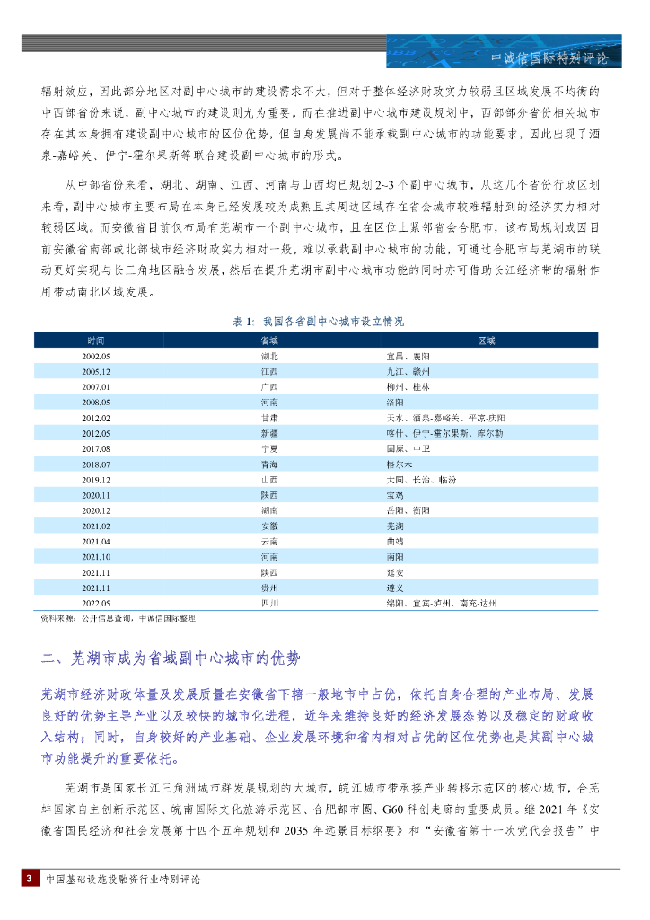中诚信国际:中国基础设施投融资行业-省域副中心城市竞争力及区域城投公司发展分析——以安徽省芜湖市为例.pdf