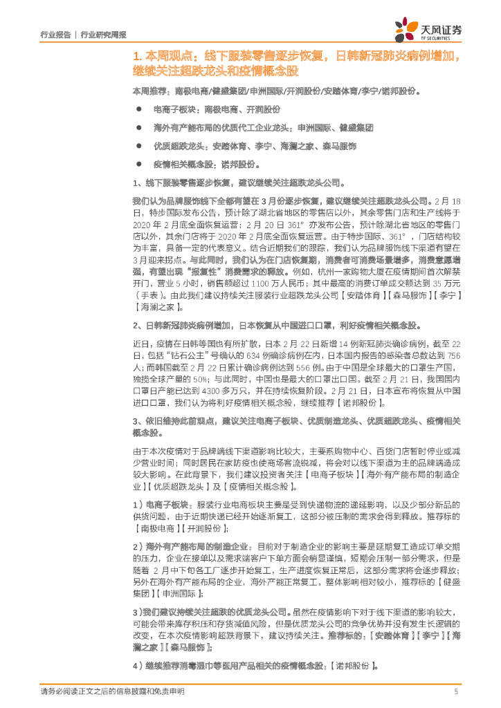 天风证券:纺织服装行业研究周报:线下服装零售逐步恢复,日韩新冠肺炎病例增加,继续关注超跌龙头和疫情概念股.pdf