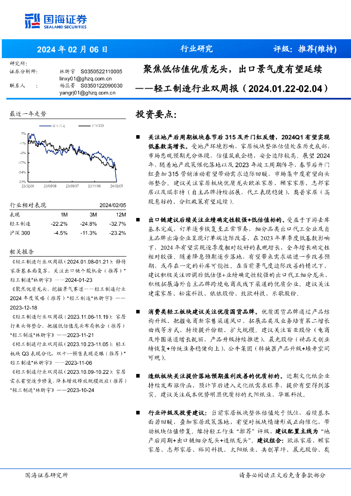 国海证券:轻工制造行业双周报:聚焦低估值优质龙头,出口景气度有望延续.pdf
