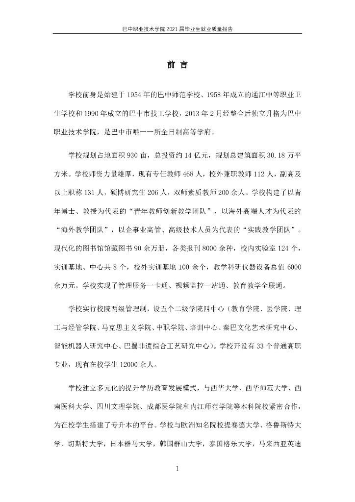 巴中职业技术学院2021届毕业生就业质量报告.pdf