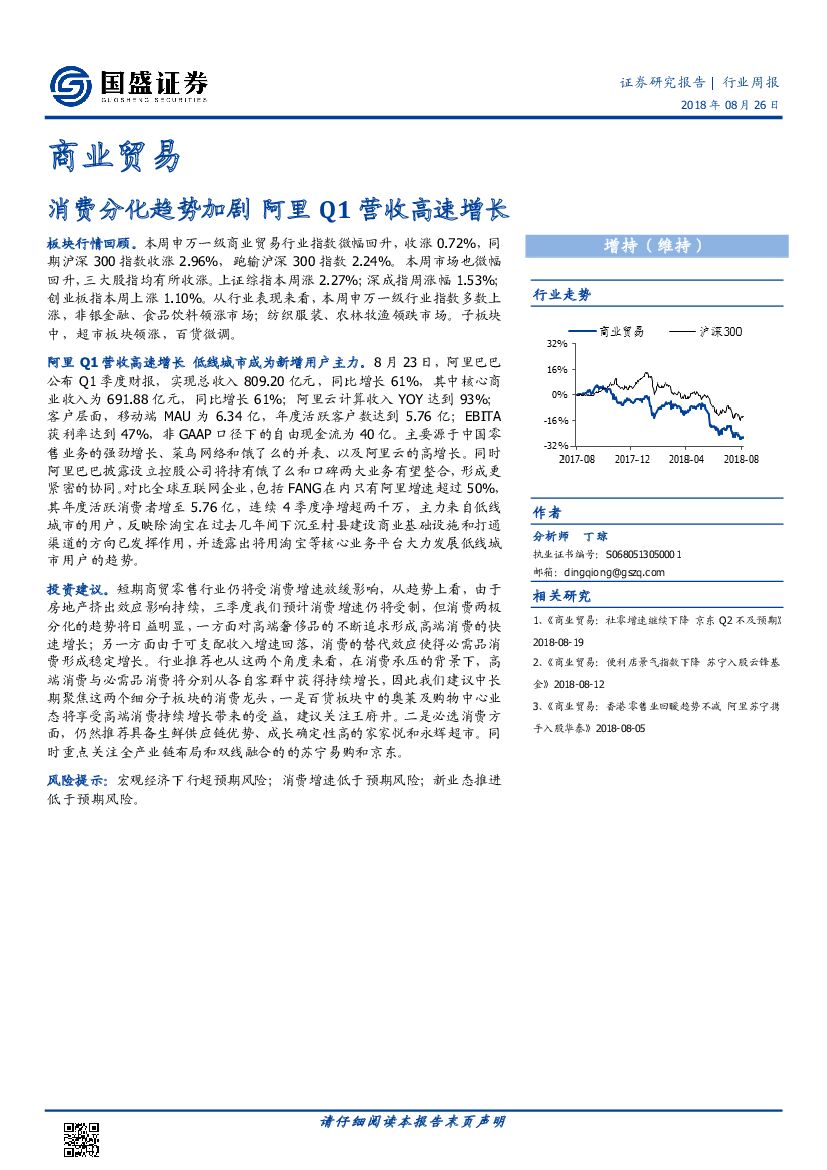 国盛证券:商业贸易行业周报:消费分化趋势加剧 阿里Q1营收高速增长.pdf