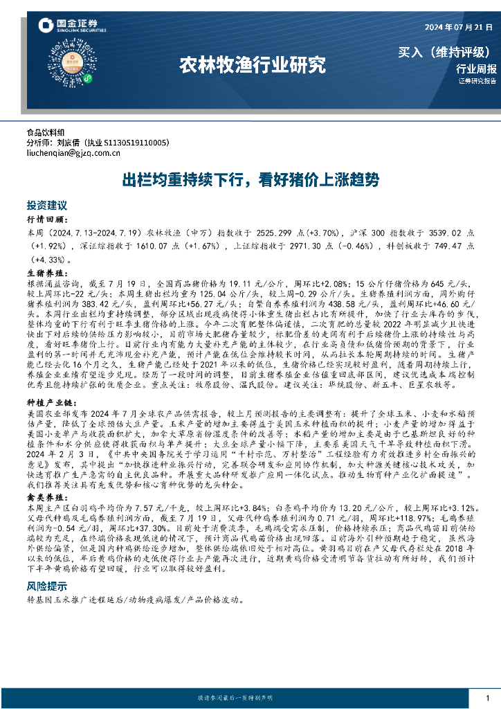 国金证券:农林牧渔行业周报:出栏均重持续下行,看好猪价上涨趋势.pdf