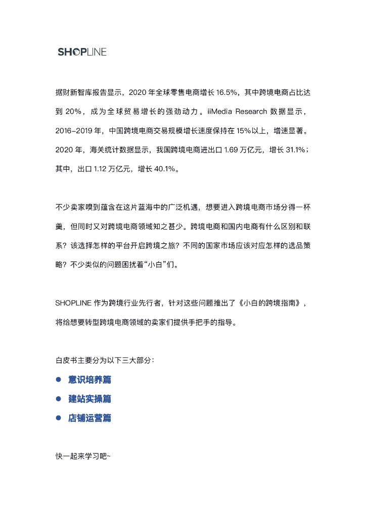 SHOPLINE:2021小白的跨境指南报告-让“小白”轻松参与全球贸易.pdf