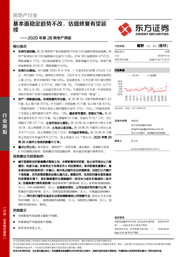 东方证券:房地产行业2020年第28周地产周报:基本面稳定趋势不改,估值修复有望延续.pdf