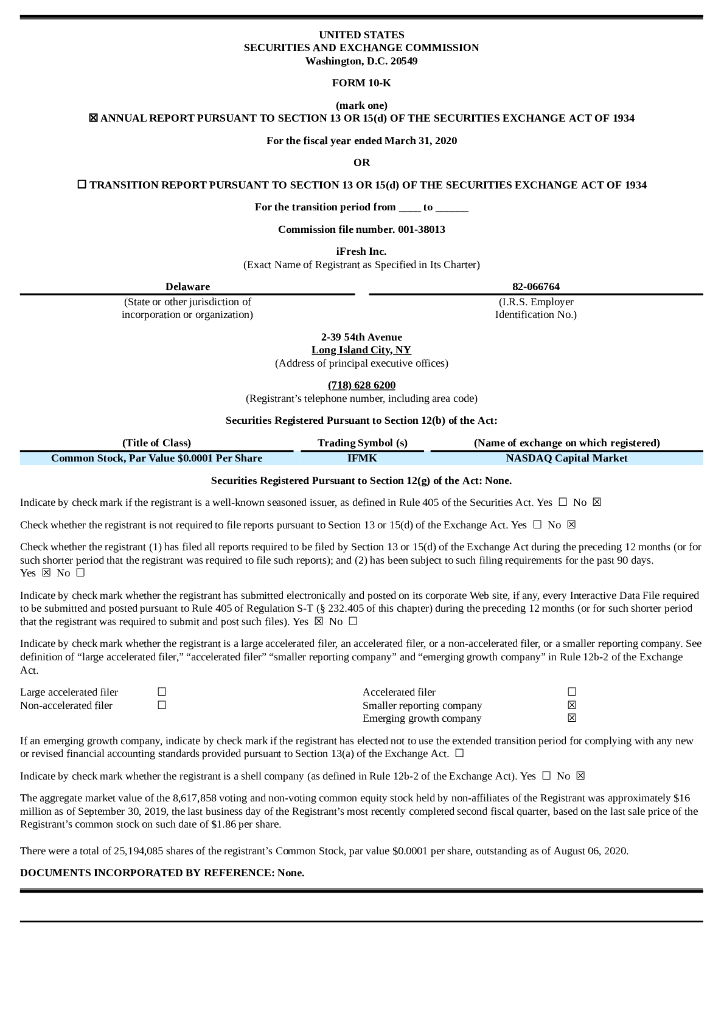 iFresh Inc.(IFMK)2020财年年度报告(英文版).pdf