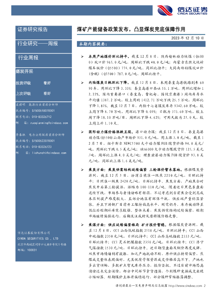 信达证券:煤炭开采周报:煤矿产能储备政策发布,凸显煤炭兜底保障作用.pdf