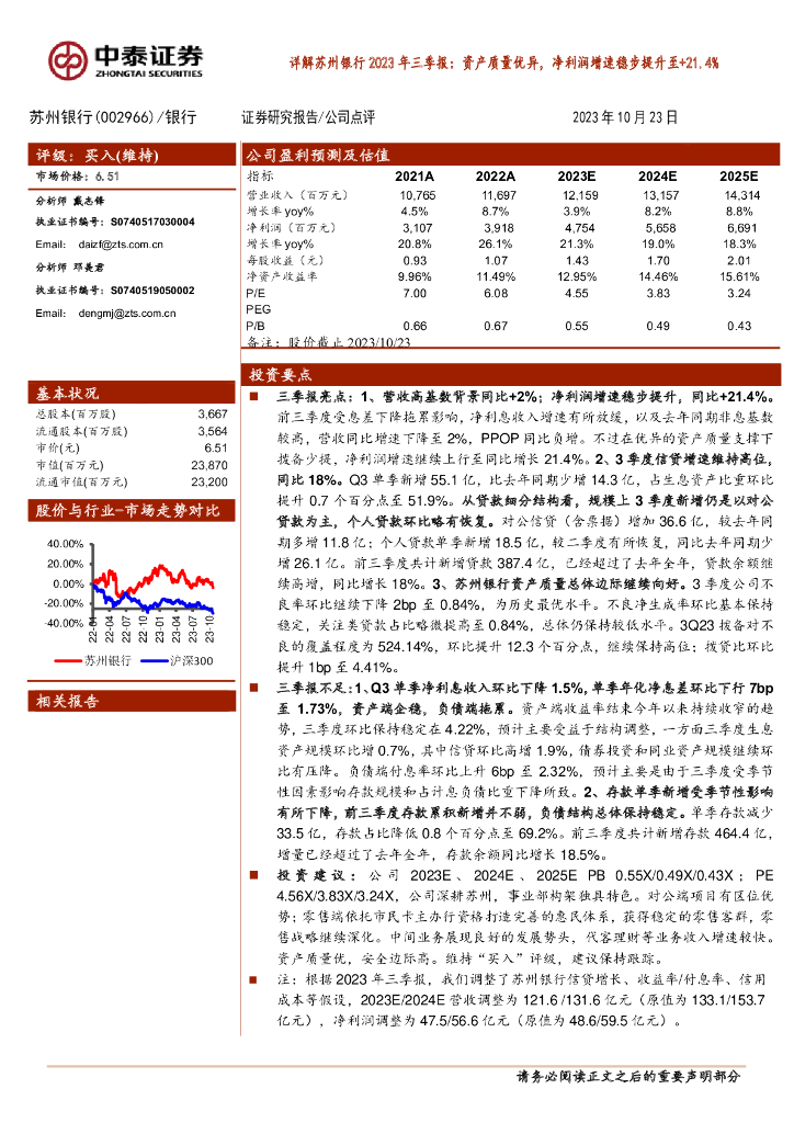 中泰证券:详解苏州银行2023年三季报:资产质量优异,净利润增速稳步提升至+21.4%.pdf
