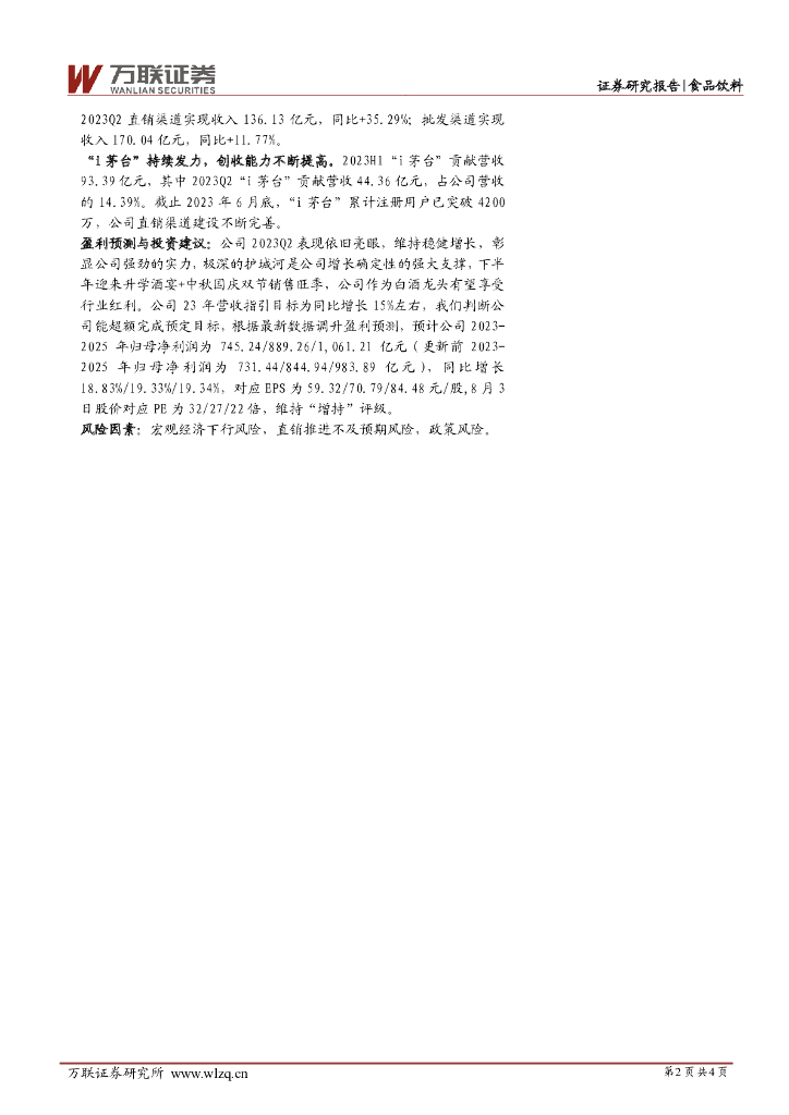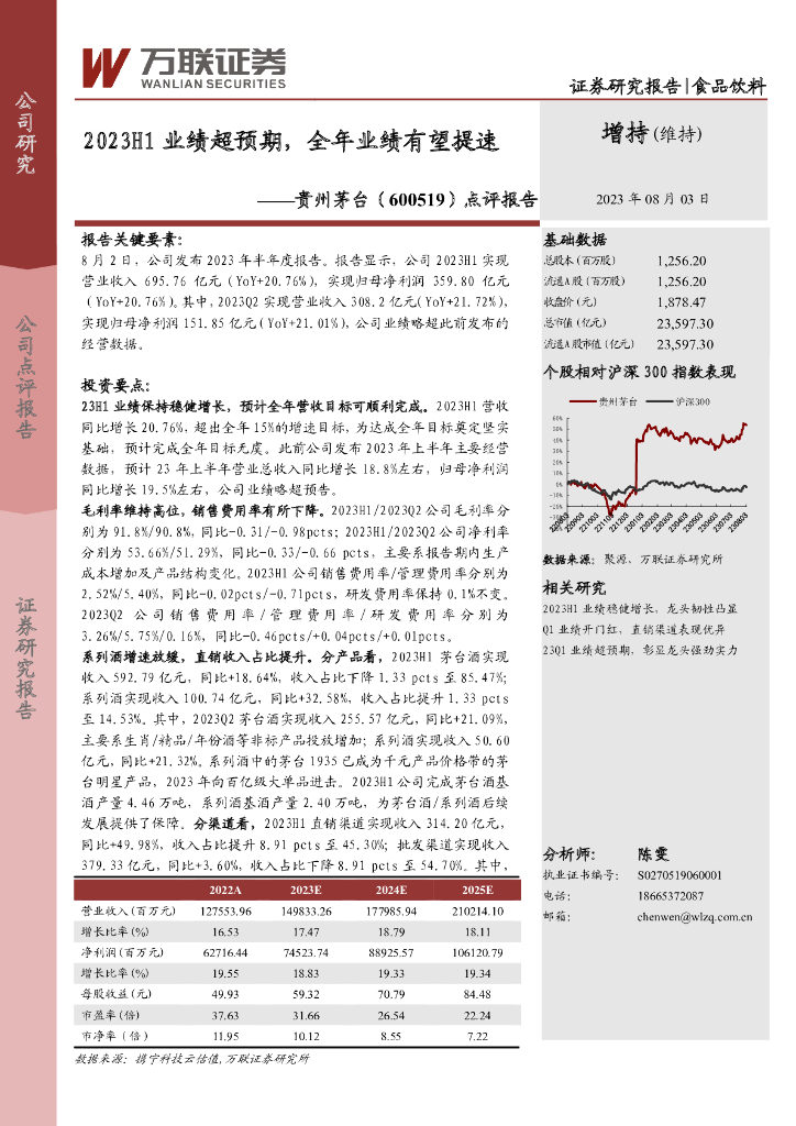万联证券:贵州茅台(600519)-点评报告:2023H1业绩超预期,全年业绩有望提速.pdf