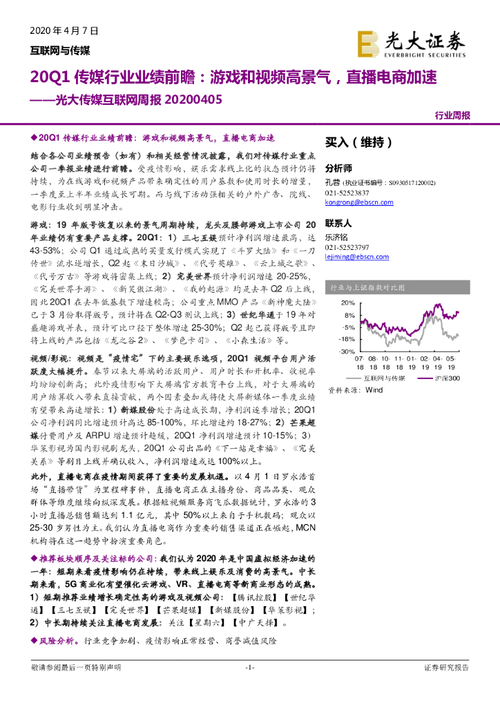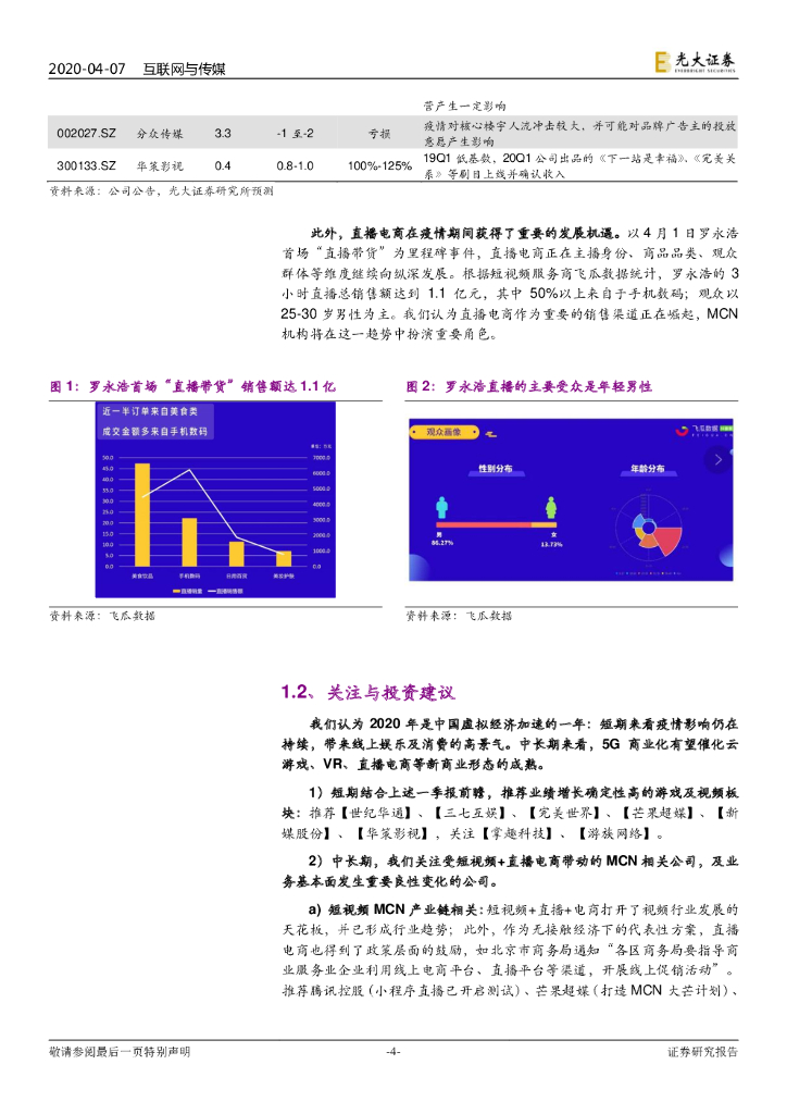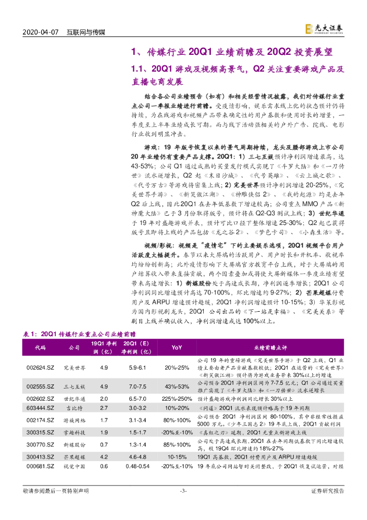光大证券:光大传媒互联网周报:20Q1传媒行业业绩前瞻:游戏和视频高景气,直播电商加速.pdf