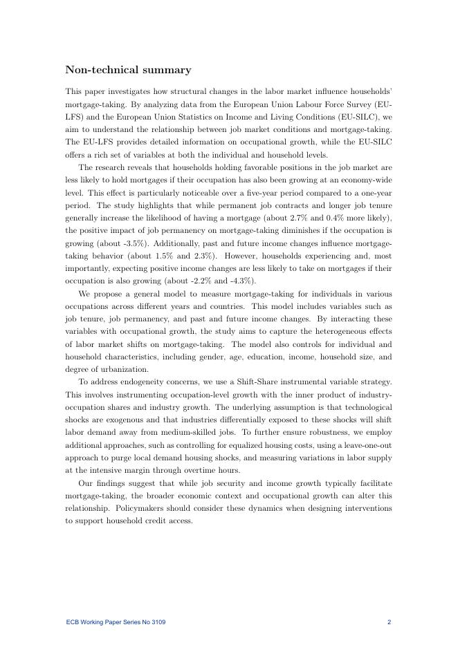 欧洲央行:劳动力市场变化对家庭抵押贷款的异质性影响(英文版).pdf