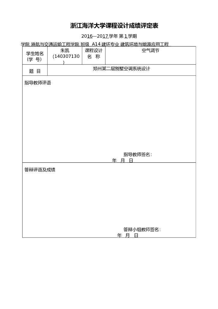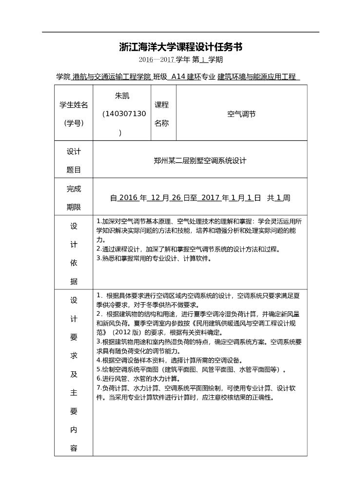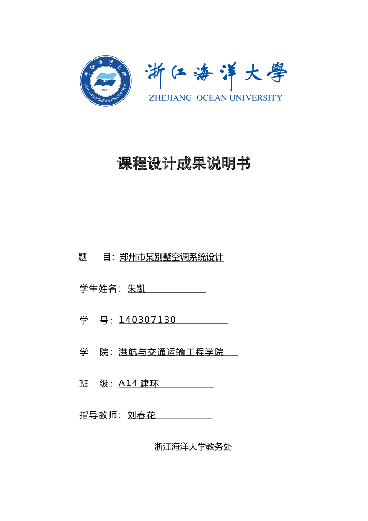 浙江海洋大学课程设计成果说明书:郑州别墅空调系统设计.doc