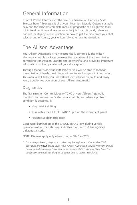 艾利森变速箱换挡油位信息、诊断代码和预测功能手册.pdf