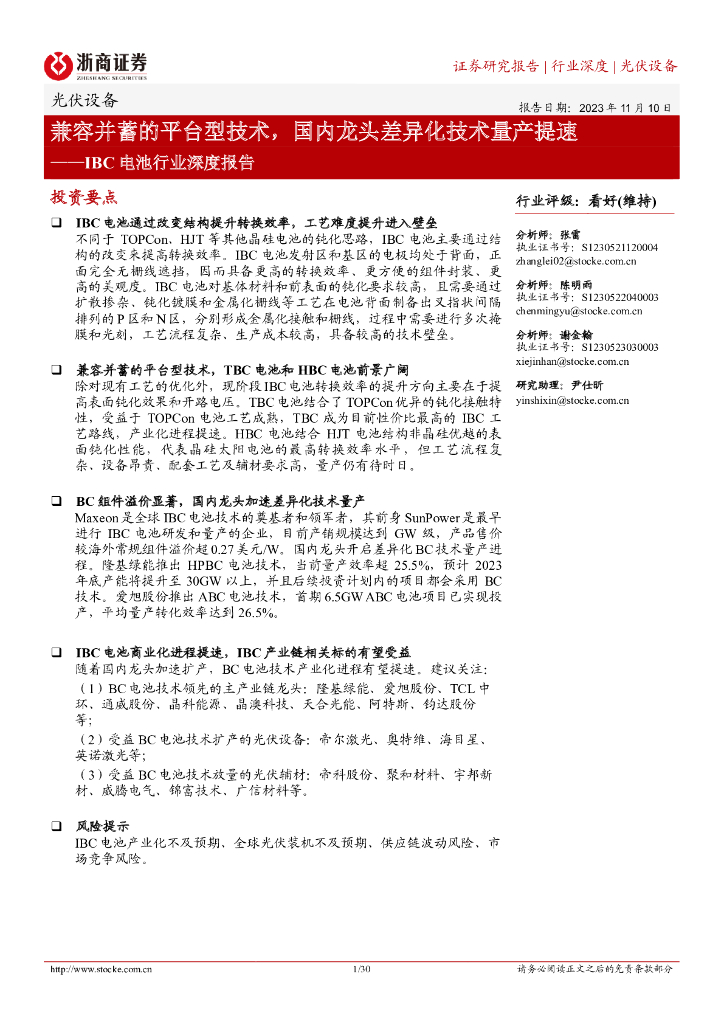 浙商证券:IBC电池行业深度报告:兼容并蓄的平台型技术,国内龙头差异化技术量产提速.pdf