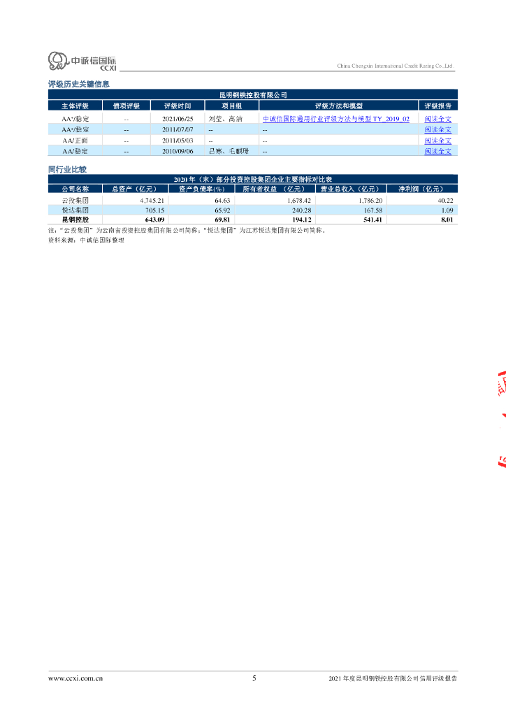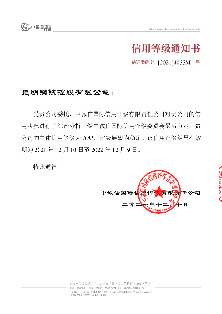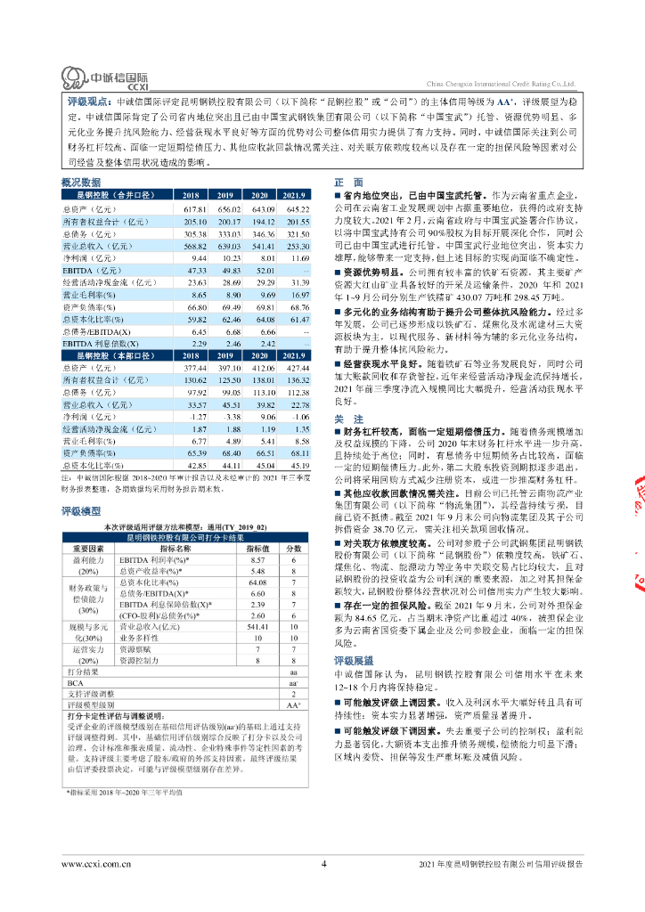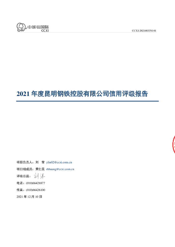 中诚信:2021年度昆明钢铁控股有限公司信用评级报告.pdf