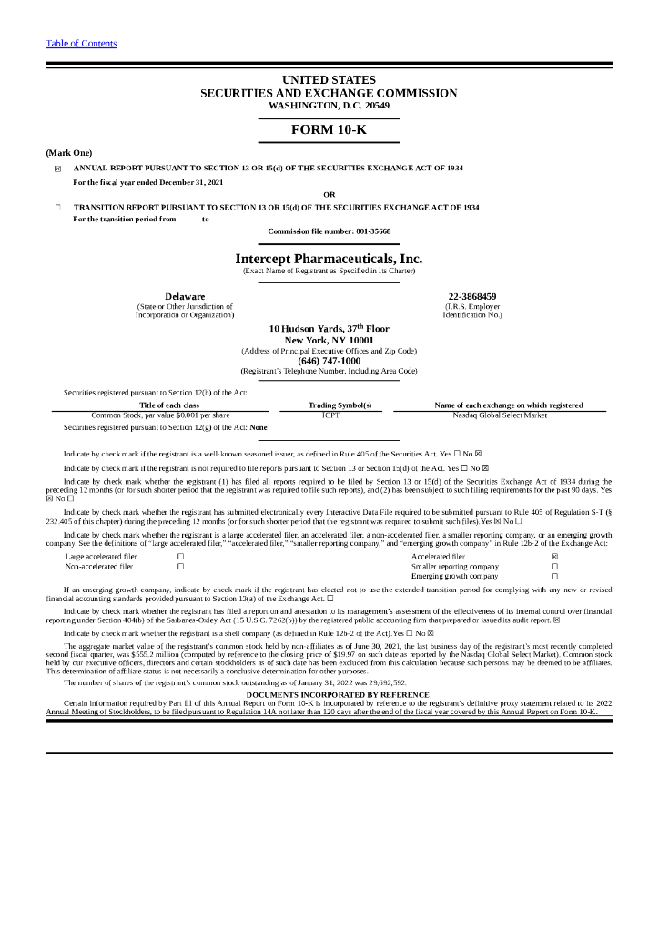 Intercept Pharmaceuticals(ICPT)2021财年年度报告(英文版).pdf