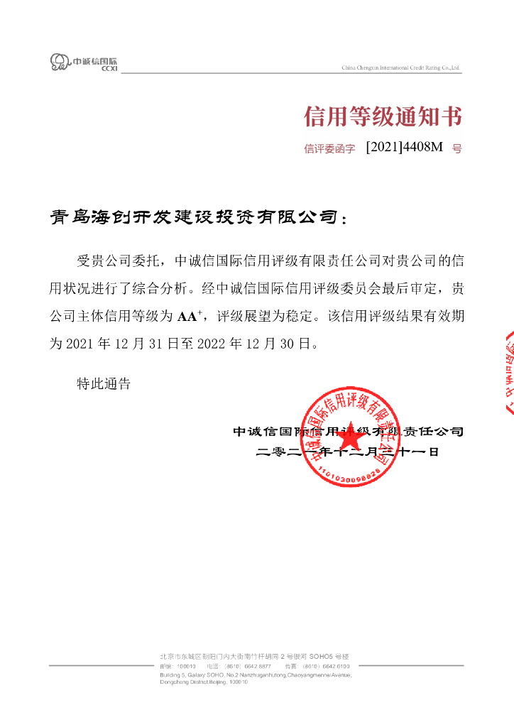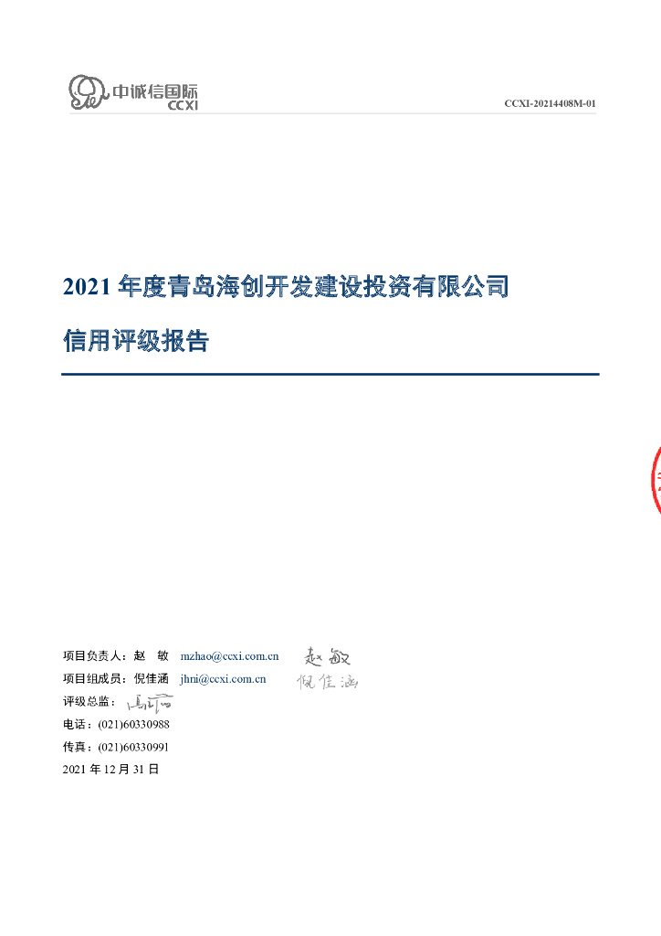 中诚信:青岛海创开发建设投资有限公司信用评级报告.pdf
